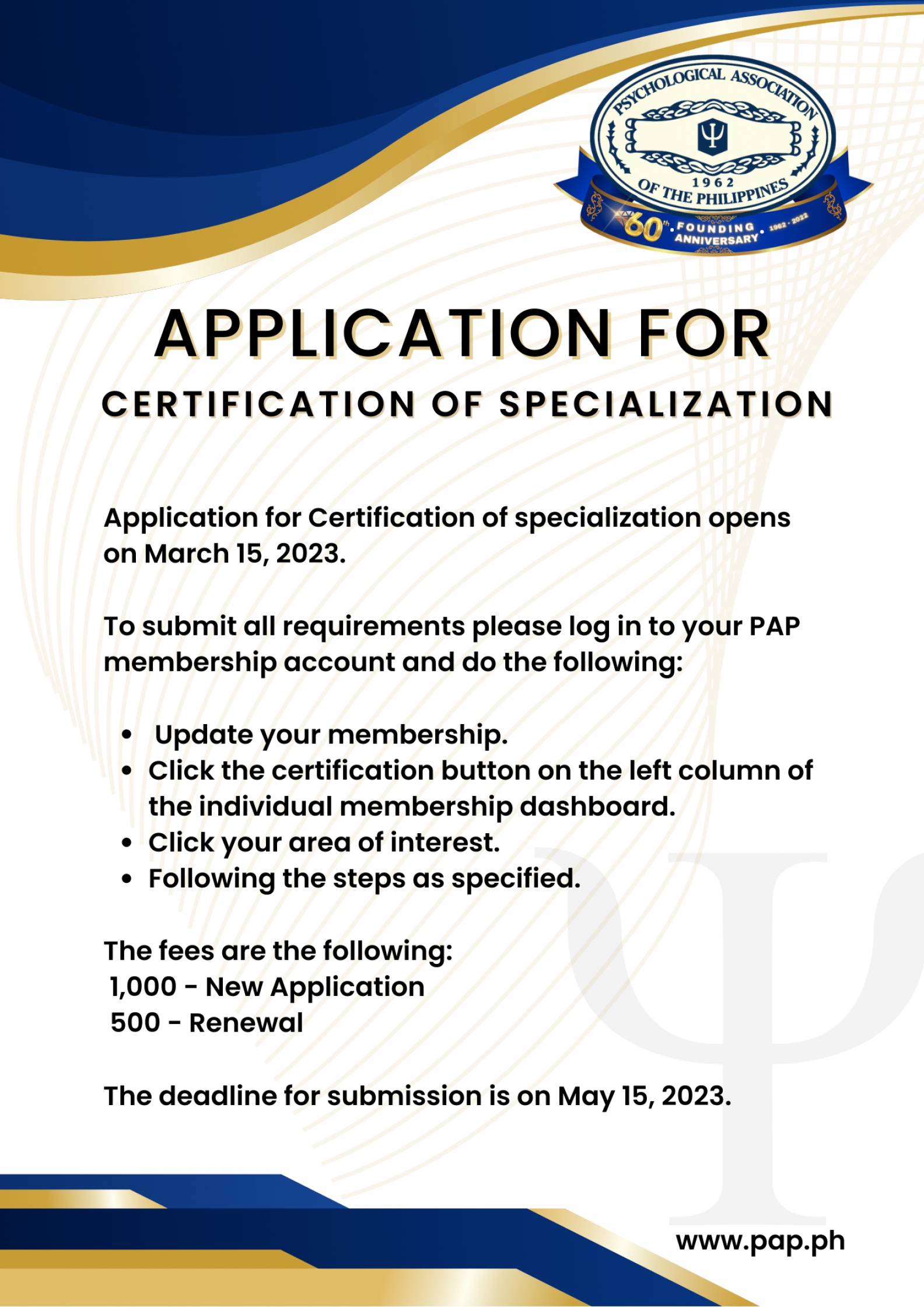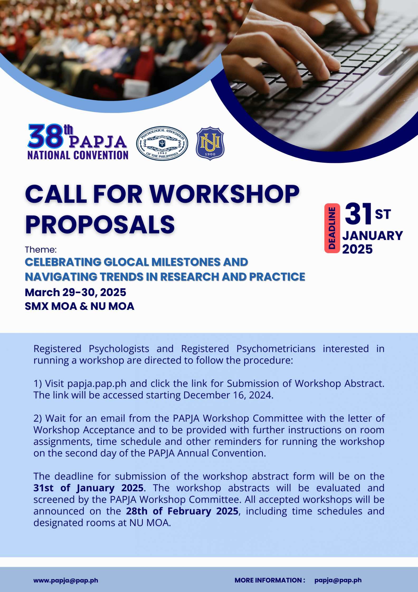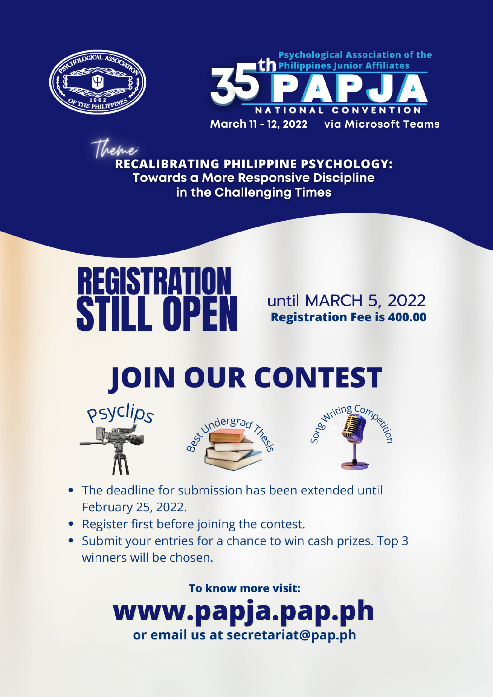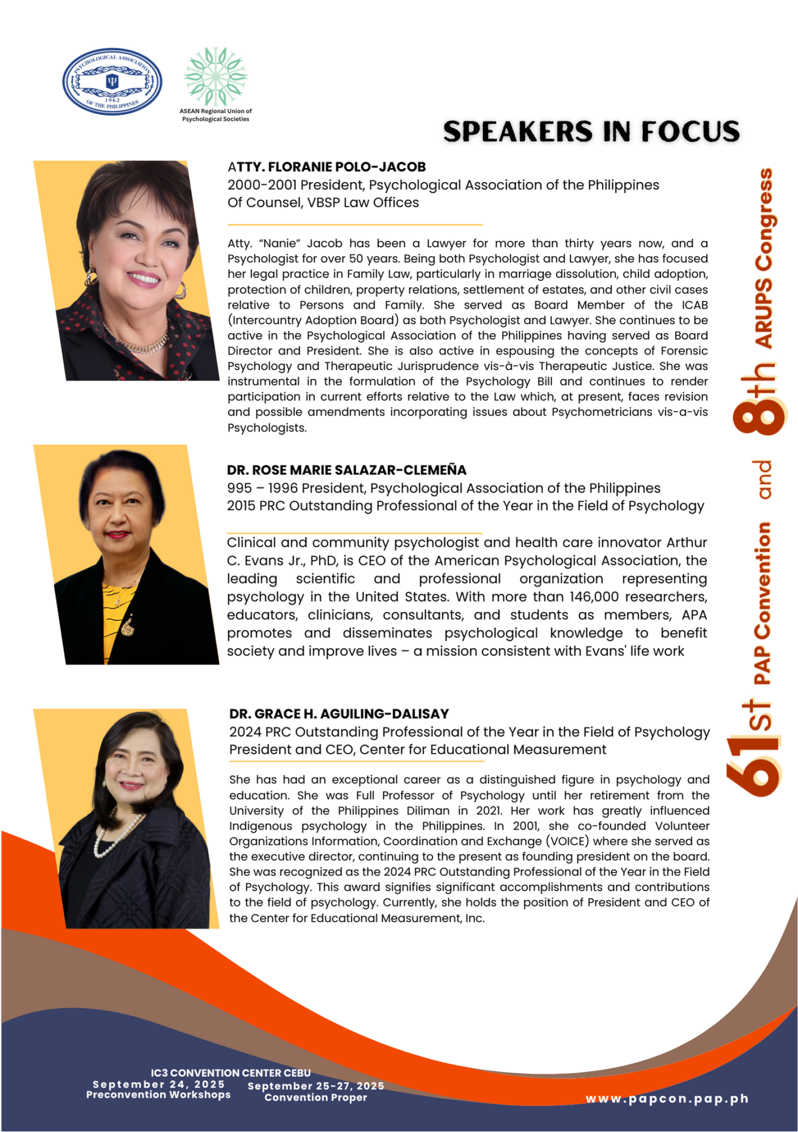 In line with this milestone, we encourage you to consider becoming a member of the Psychological Association of the Philippines (PAP), the nationally accredited professional organization for psychologists and psychometricians in the country. PAP serves as the leading body that upholds ethical standards, advances professional competence, and promotes the growth and development of psychology as a discipline and profession.