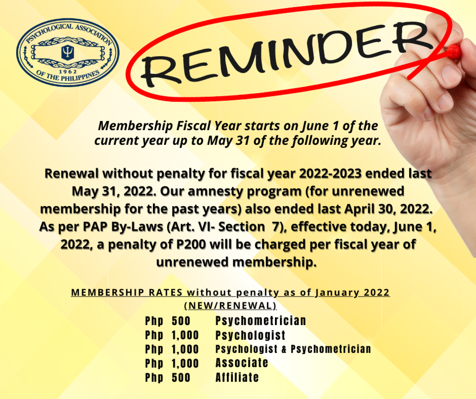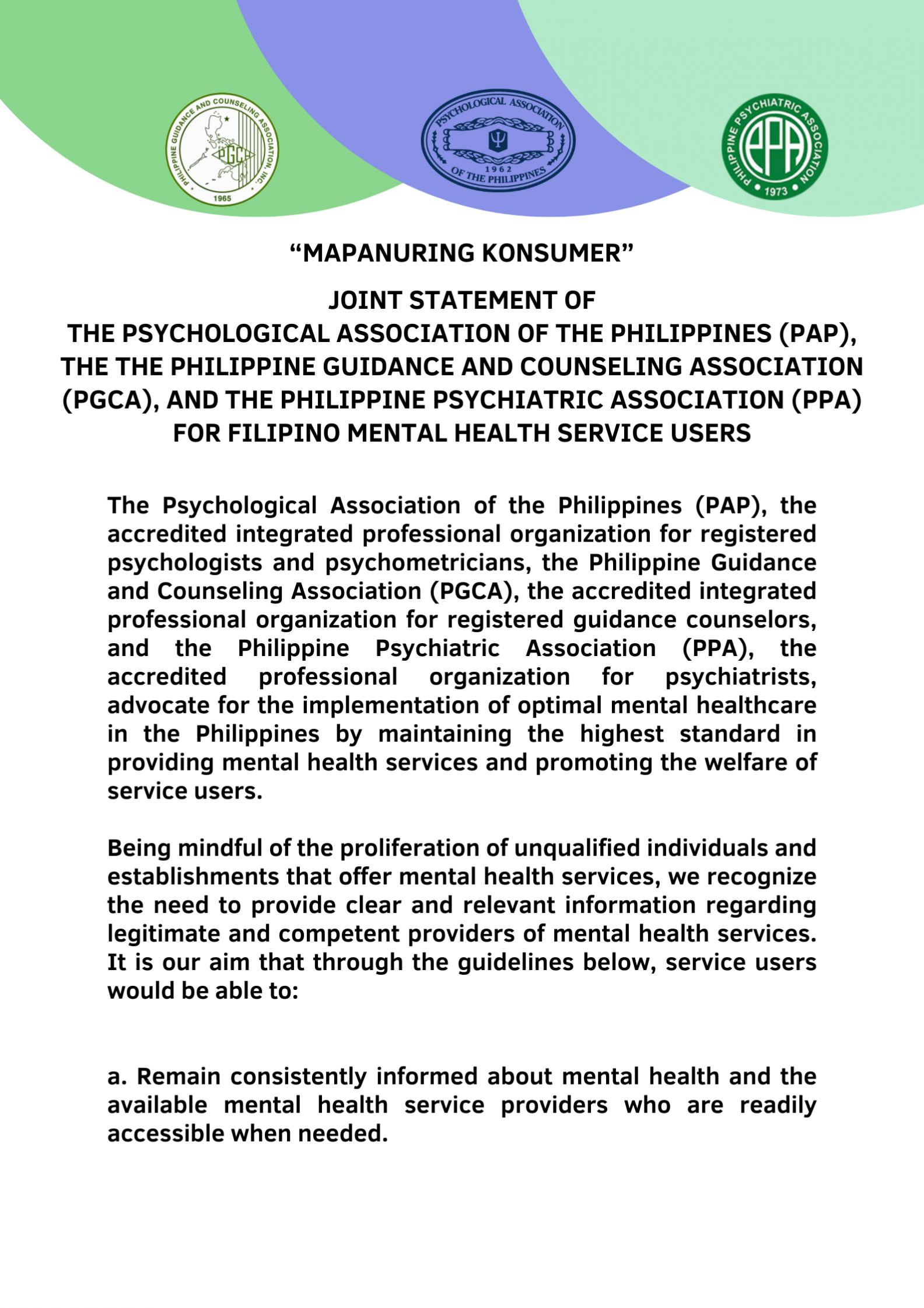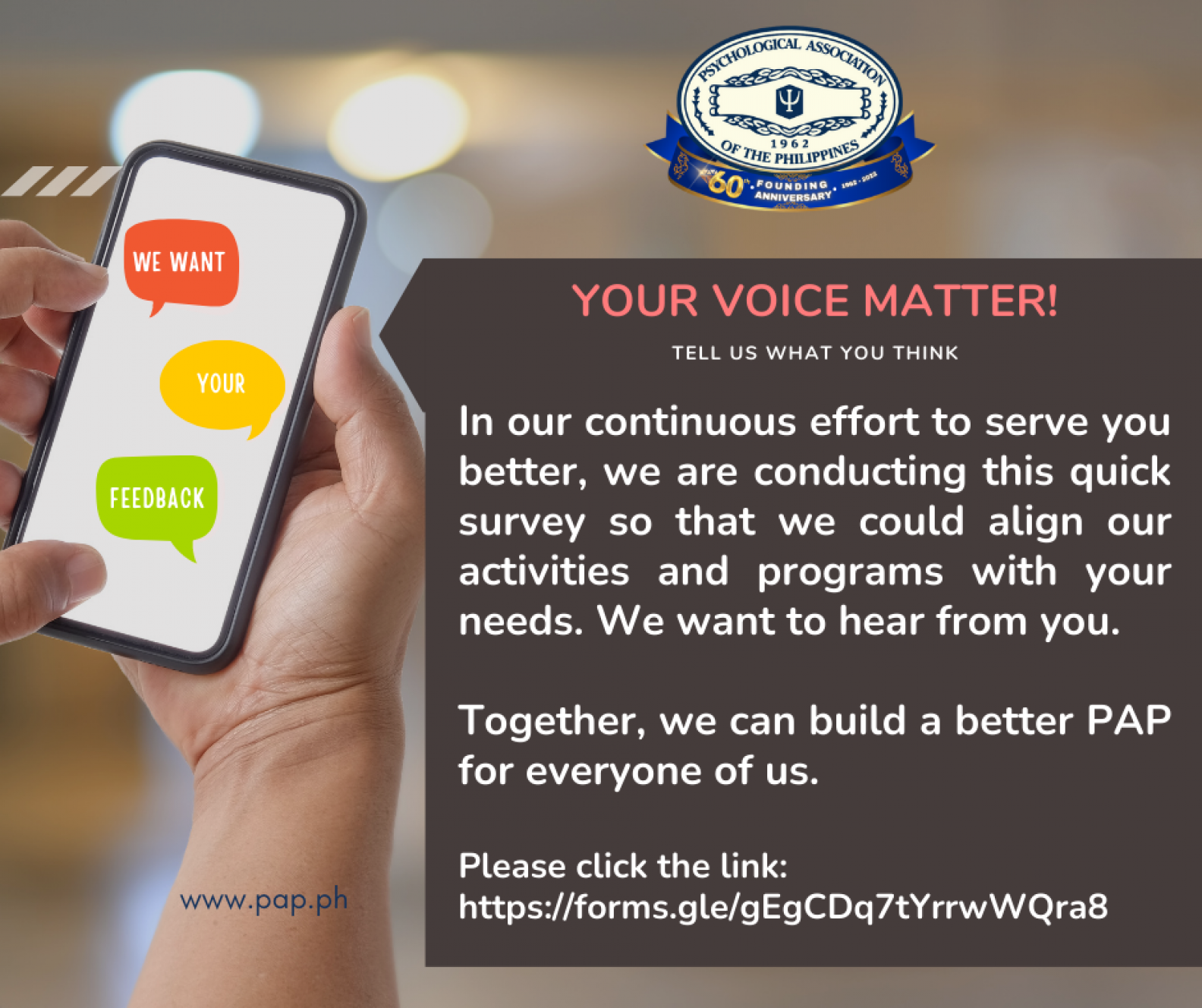 We invite you to take this step and become an active member of the Psychological Association of the Philippines. Together, let us continue to promote ethical practice, lifelong learning, and compassionate service to the Filipino people.
