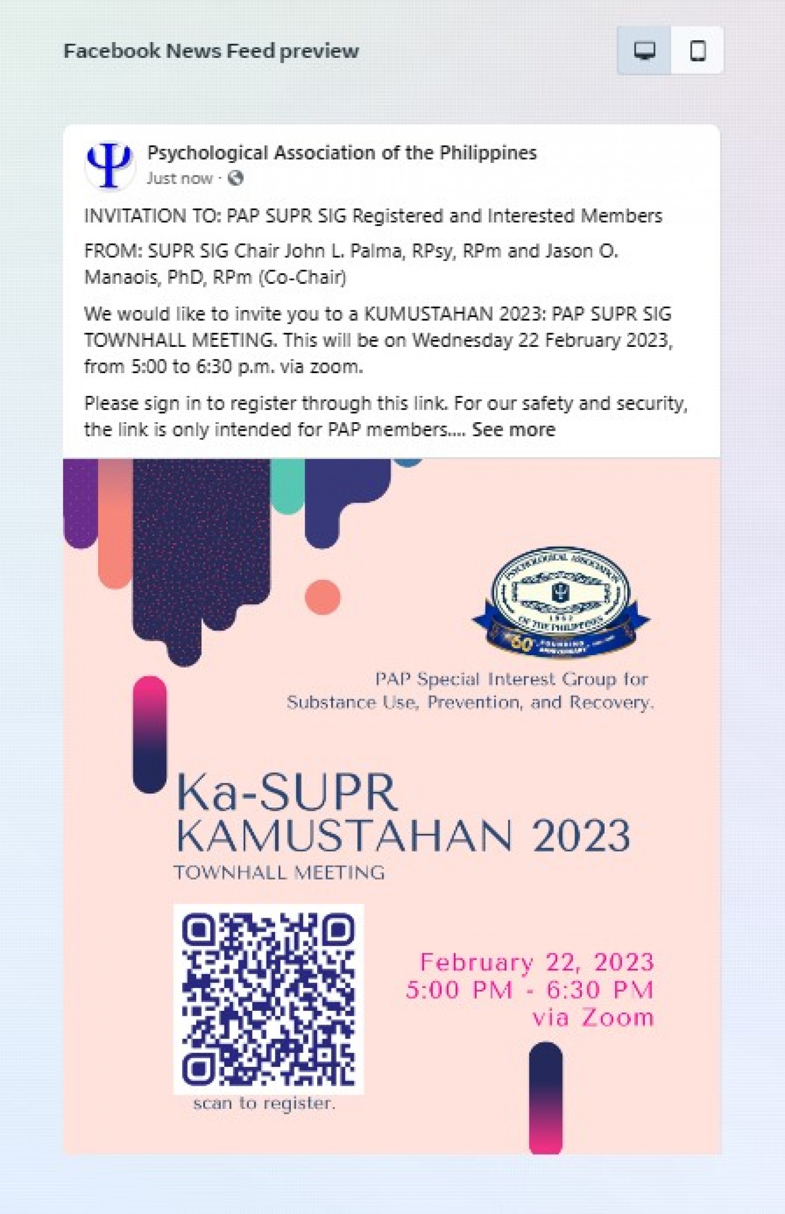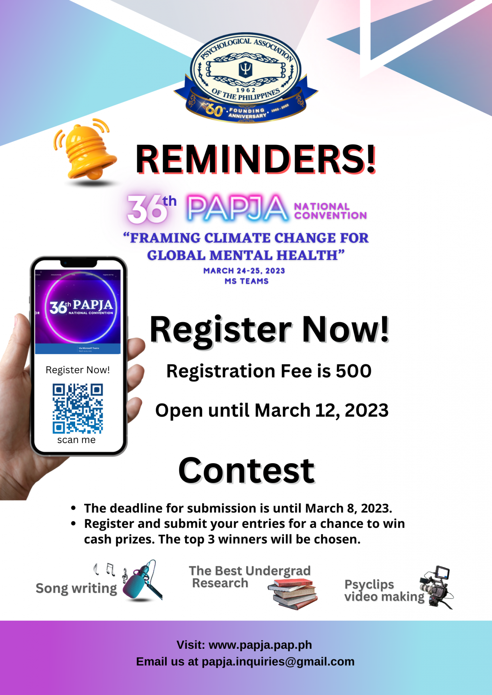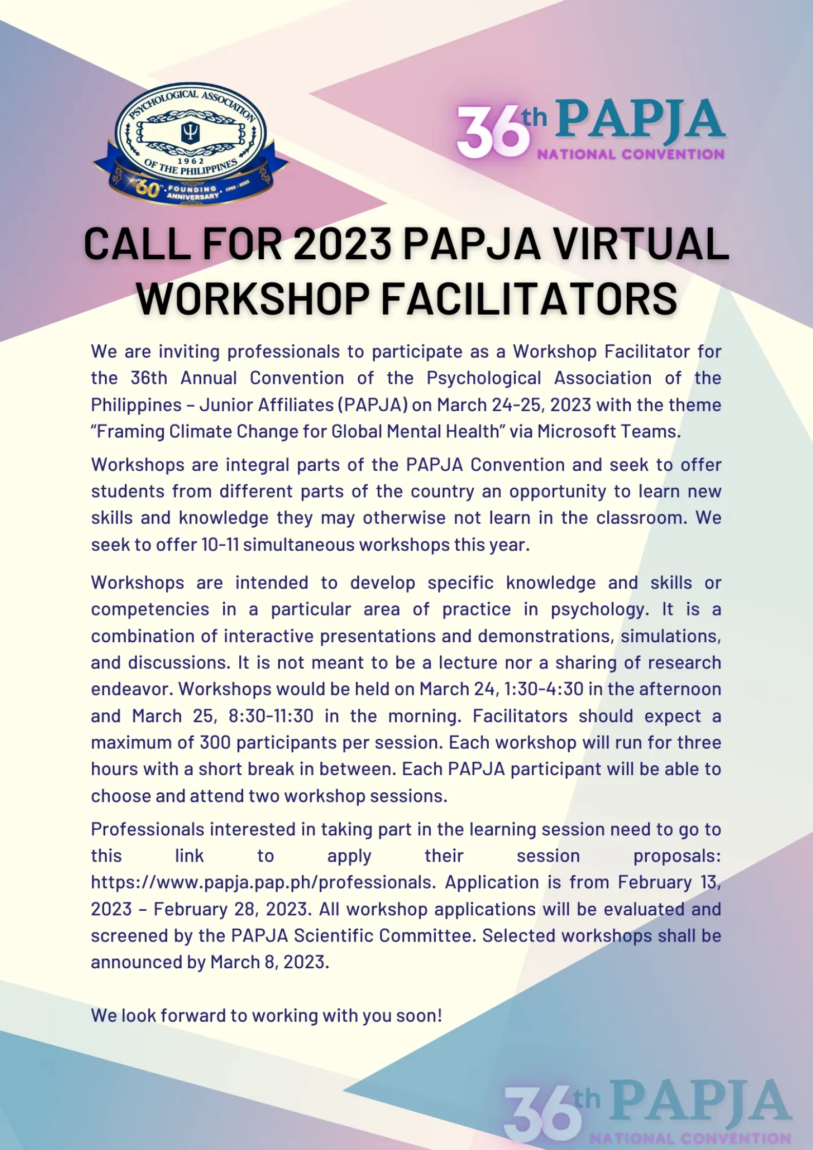 We invite you to take this step and become an active member of the Psychological Association of the Philippines. Together, let us continue to promote ethical practice, lifelong learning, and compassionate service to the Filipino people.